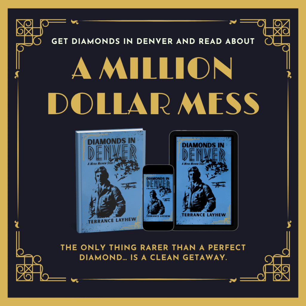 When pilot Mitch Mayhew takes a job ferrying a mysterious woman out of the Rockies, he doesn’t expect bullets, betrayal, or a diamond necklace worth more than his soul. But in the glittering speakeasies and back alleys of 1920s Denver, every gem casts a long shadow… and someone will kill to own it.