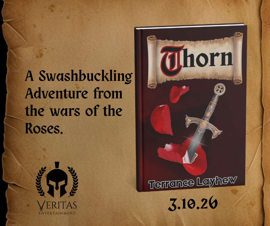 It’s exciting to be able to share the cover of my next book! Thorn from Veritas Entertainment, 3/10/26.